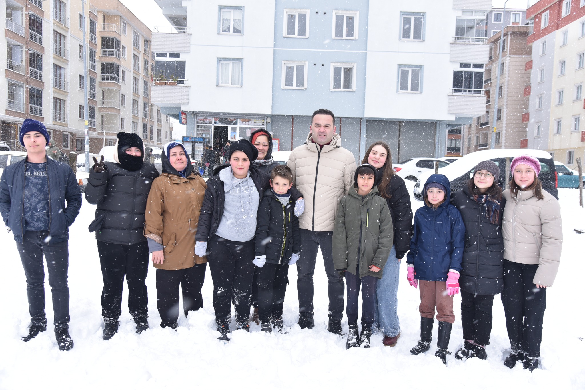Çocuklarımızla birlikte kartopu oynamayı ihmal etmeyen Belediye Başkanımız Hasbi Dede, yağan karın keyfini çıkardı.