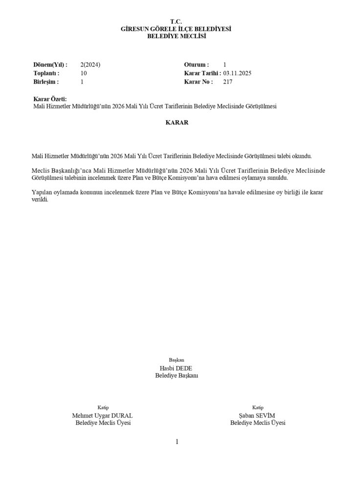 2026 Yılında Uygulanacak olan Ücret Tarifelerinin Görüşülmesi