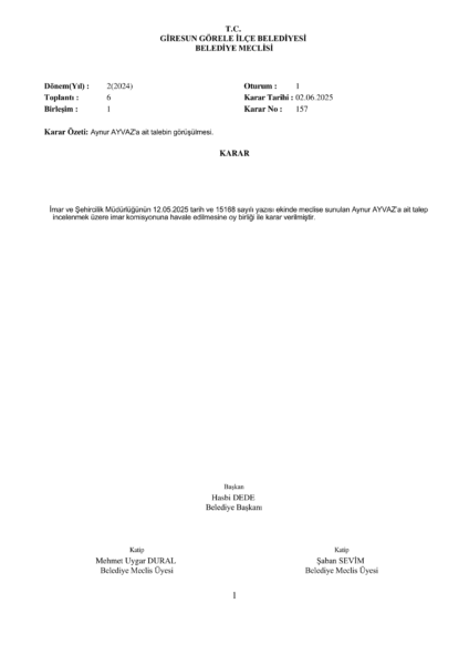 Aynur AYVAZ’a ait talebin görüşülmesi.