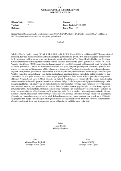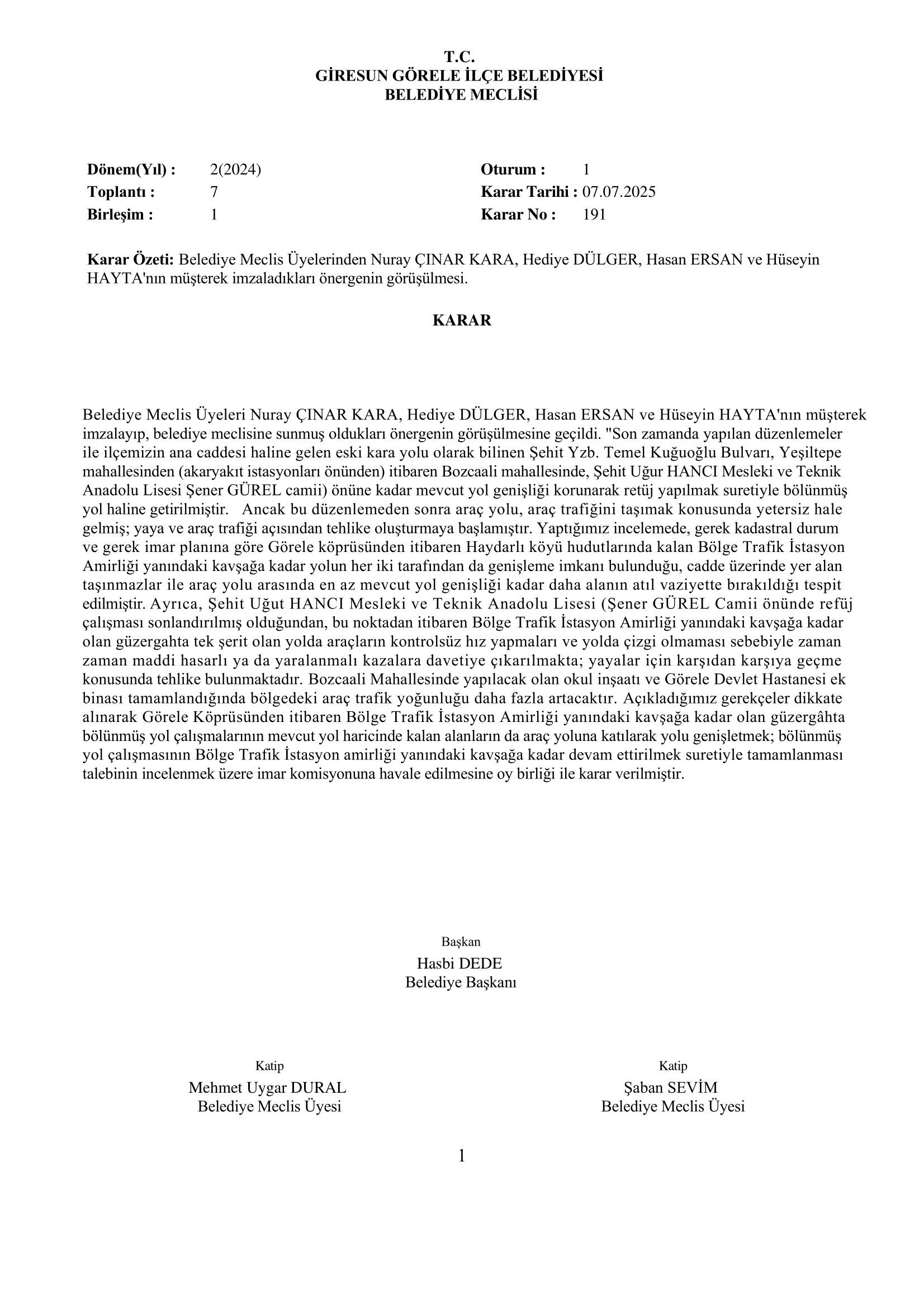 Belediye Meclis Üyelerinden Nuray ÇINAR KARA, Hediye DÜLGER, Hasan ERSAN ve Hüseyin HAYTA’nın müşterek imzaladıkları önergenin görüşülmesi.