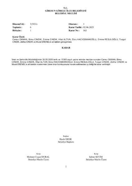 Cansu OKMAN, Birsu CINDIK, Emine CINDIK, Hilal ALTUN, Ebru HACIOSMANOĞLU, Emine RESULOĞLU, Turgut CINDIK, Zeliha CINDIK ve Murat ERENEL’e ait talebin görüşülmesi