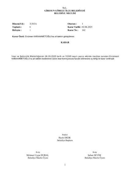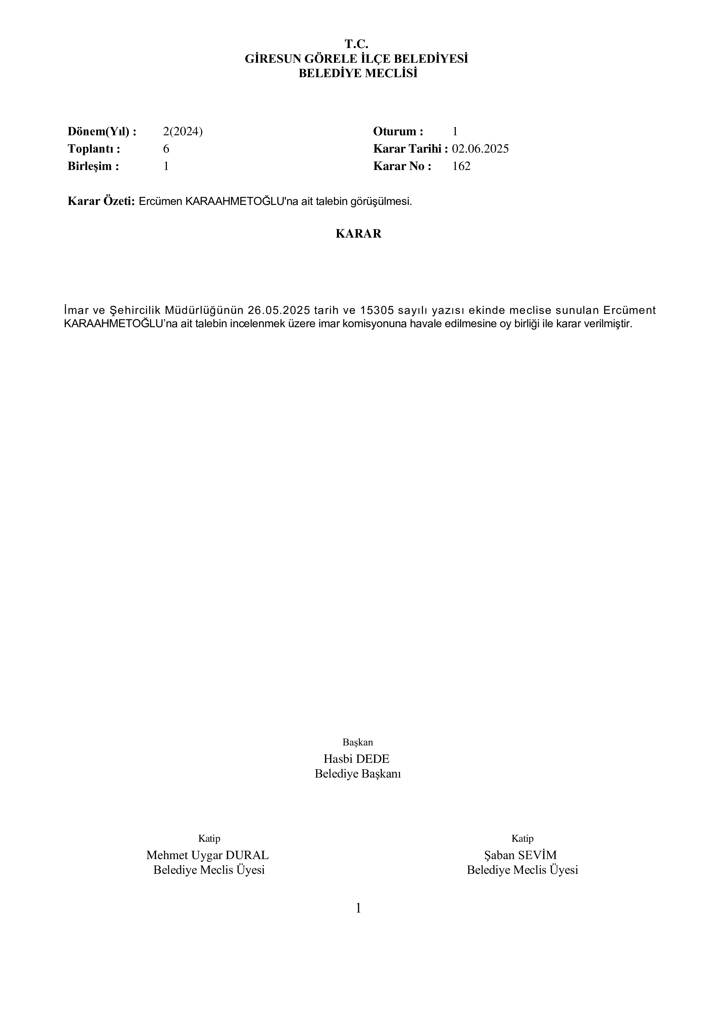 Ercümen KARAAHMETOĞLU’na ait talebin görüşülmesi