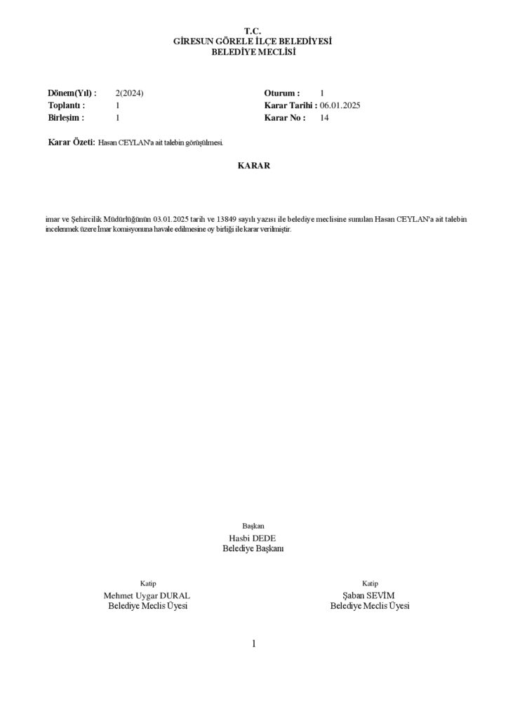 Hasan CEYLAN’a ait talebin görüşülmesi.