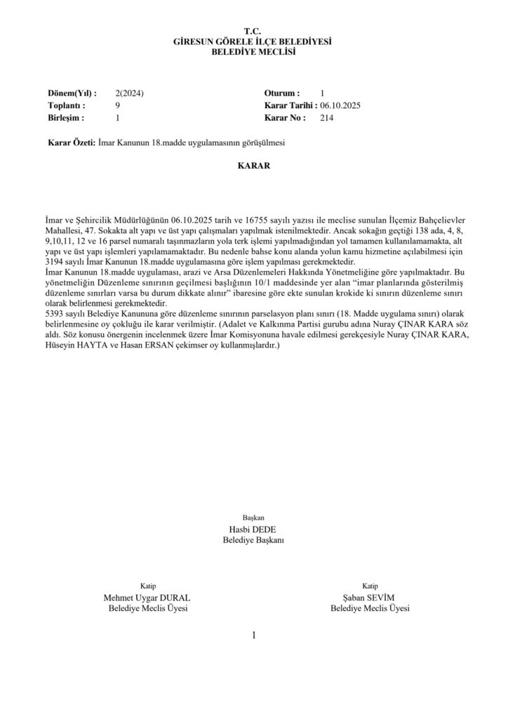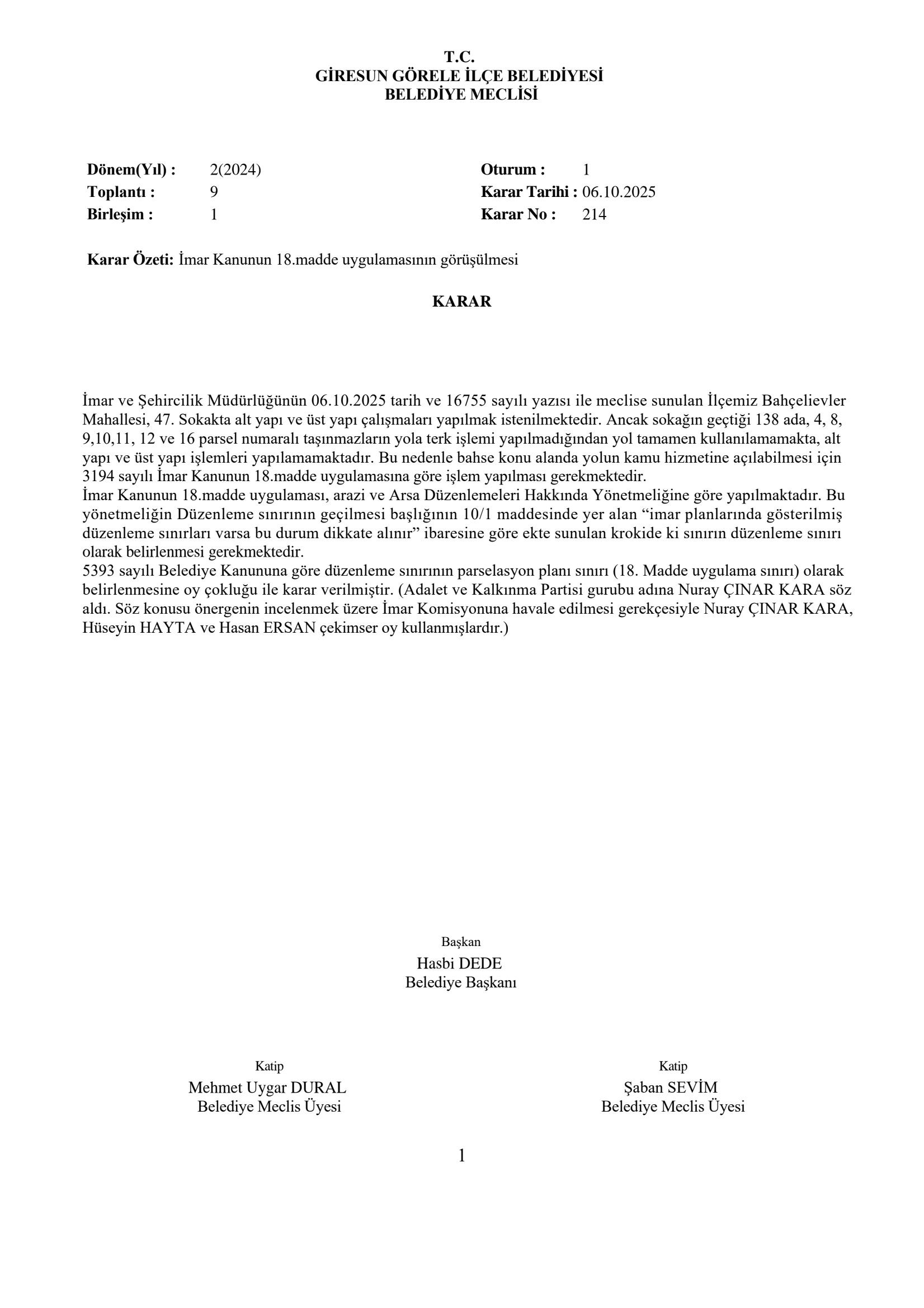 İmar Kanunun 18.madde uygulamasının görüşülmesi