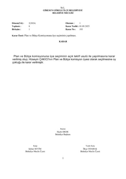 Plan ve Bütçe Komisyonuna üye seçiminin yapılması.